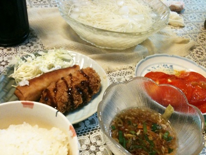 2011年6月24日 / 最終更新日時 : 2011年6月24日 comet_chan お昼ごはん 今日のお昼ご飯110624 FacebookXBlueskyHatenaPocketCopy 本日のお昼ご飯は素麺とクリームコロッケ、春巻そしてトマトでした。 身体を冷やす素麺とトマトに温める揚げ物と写ってませんが辛子明太子でプラマイゼロです(笑) “今日のお昼ご飯110624” に対して2件のコメントがあります。 瀬安 功志 より: 2011年6月24日 12:59 PM うどんもそうですが、冷たい麺と揚げもん、ほんまよぅ合いますね! 返信 長谷川 昭博 より: 2011年6月24日 1:01 PM んだんだ!その通り! ところで、今日香川の醤油屋さんのしょうゆゲットしました。 今晩のブログでアップしますのでお楽しみに(^_^)v 返信 コメントを残す コメントをキャンセルメールアドレスが公開されることはありません。 ※ が付いている欄は必須項目ですコメント ※ 名前 ※ メール ※ サイト 次回のコメントで使用するためブラウザーに自分の名前、メールアドレス、サイトを保存する。 上に表示された文字を入力してください。 Δ