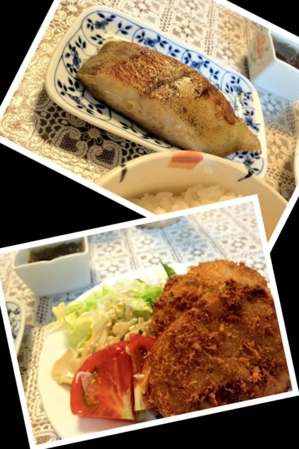 本日の米屋のお昼ご飯はコロッケとカレイの漬け焼き、もずく酢でした。