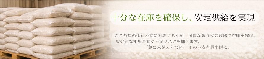 近年の供給不安定な状況に備え、秋の収穫時期にできる限り在庫を確保し、安定供給に努めております。